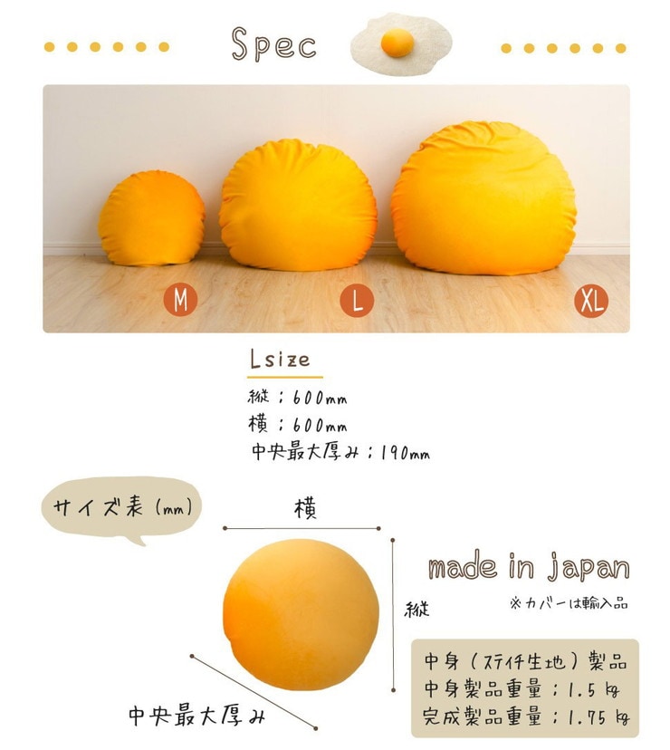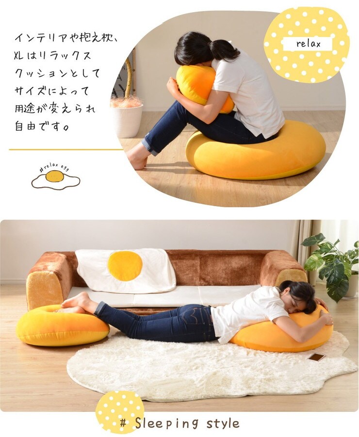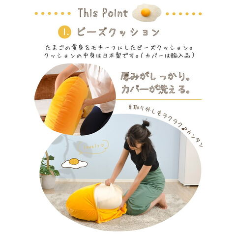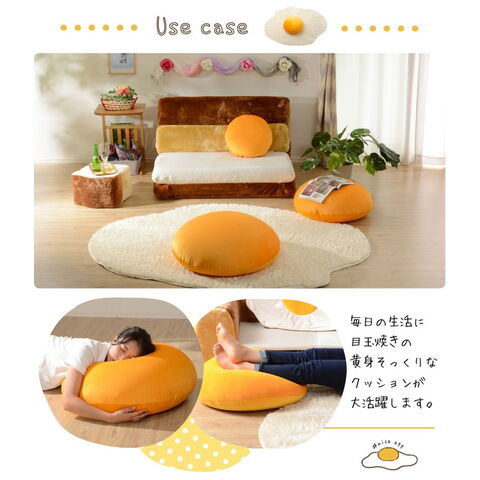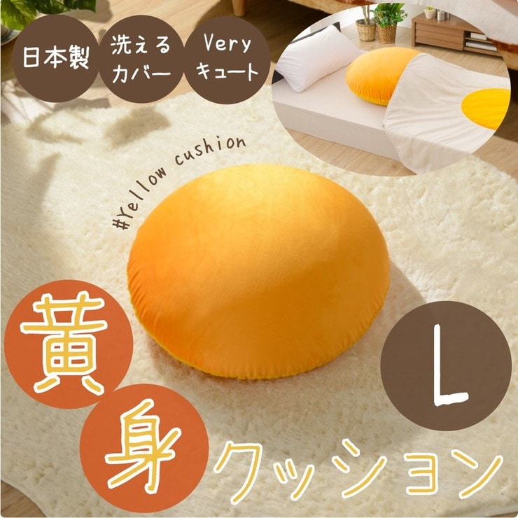 卵の黄身 クッション Lサイズ 食パンシリーズ クッション たまご 黄身 大きい ビーズクッション 国産 日本製【送料無料】