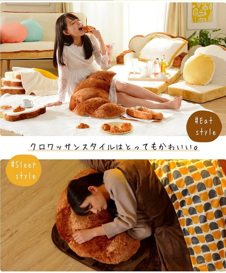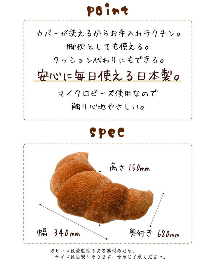 日本製 クロワッサン枕 枕 クッション ビーズクッション 国産 おしゃれ かわいい 食パンシリーズ【送料無料】