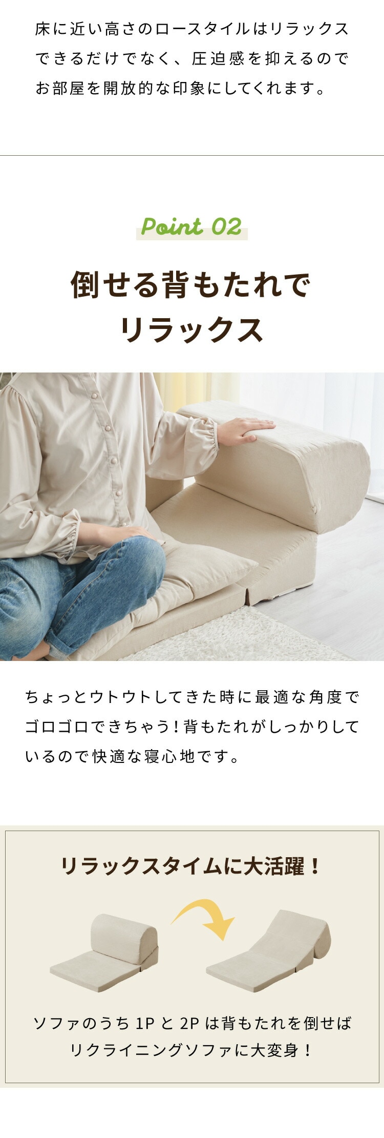 一人掛けと二人掛けの背もたれは倒すことができるため、横になってゆゆったりとくつろいでいただけます。