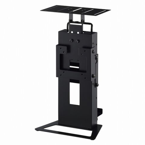 設置機器を選ばない汎用型の小型卓上TV会議スタンド。ディスプレイ、カメラ、STB、ACアダプターなどTV会議機器をまとめて設置可能。