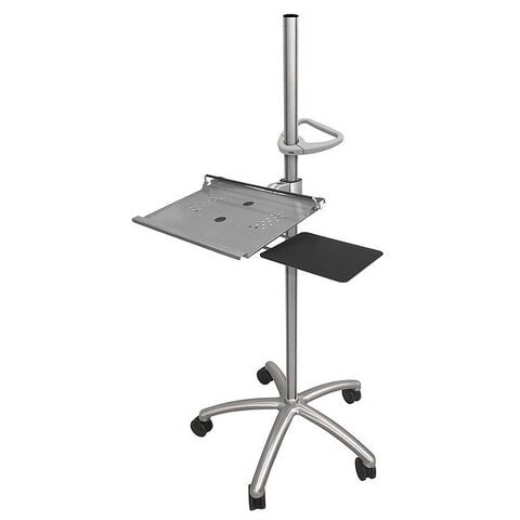 移動式の簡易型ノートPCスタンドです。車輪がついていますので、スタンドごと自由に移動させることができます。ノートPC台の耐荷重は5kg未満です。商品構成はPA-24D+KA-01N+OP-040になります。ウェイト(OP-021)を増設することで様々なオプションパーツを追加しても本体の転倒防止となります。