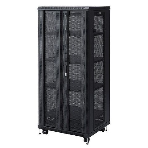 小型機器などをマルチに収納できる全面メッシュパネルの鍵付きラック。高さ1600mmタイプ。