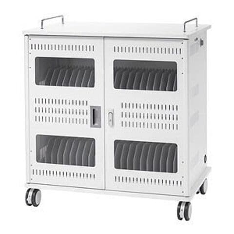 タブレット44台を一括収納できる、省スペースタイプの保管庫です(1ヵ所あたり有効内寸/W35xD370xH290mm:14インチ程度まで対応)。