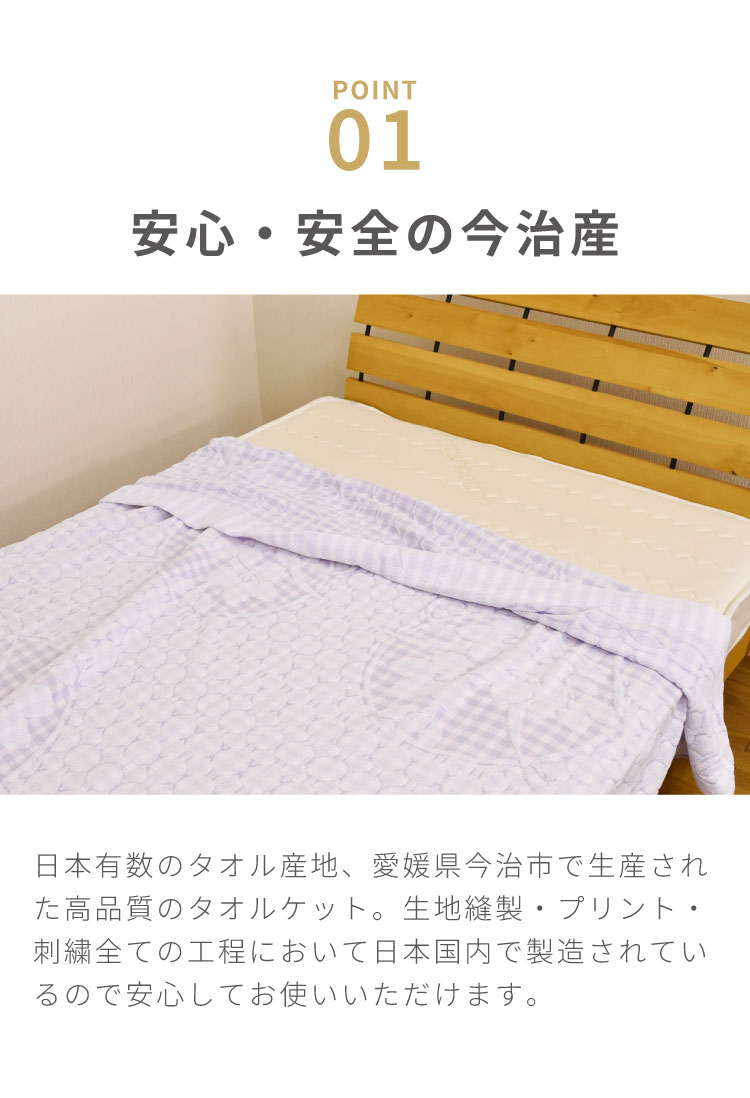 本体に今治タオルブランド認定マークは付いておりませんが、「愛媛県今治市」で作られた高品質の今治織りタオルケットです。
