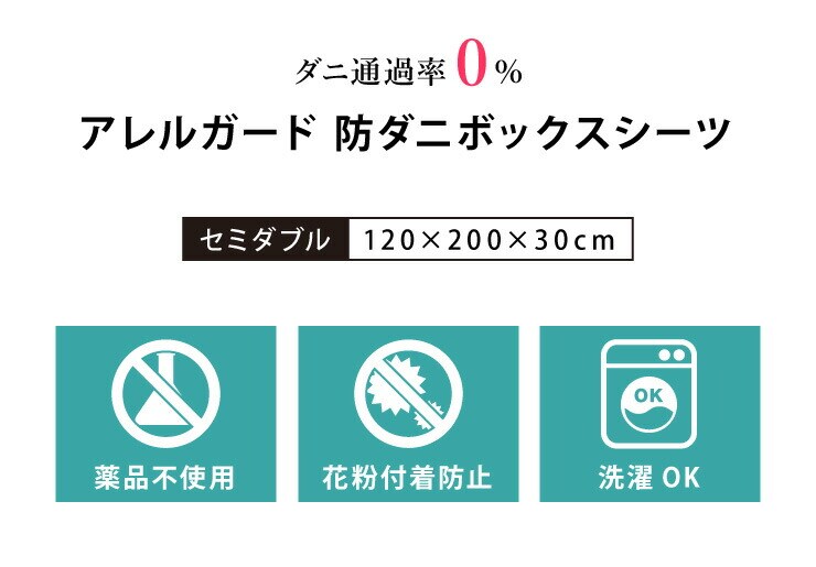 アレルガード ボックスシーツ セミダブル 120×200×30cm 防ダニ 高密度生地使用 洗える ベッドシーツ ボックスカバー 花粉対策【送料無料】