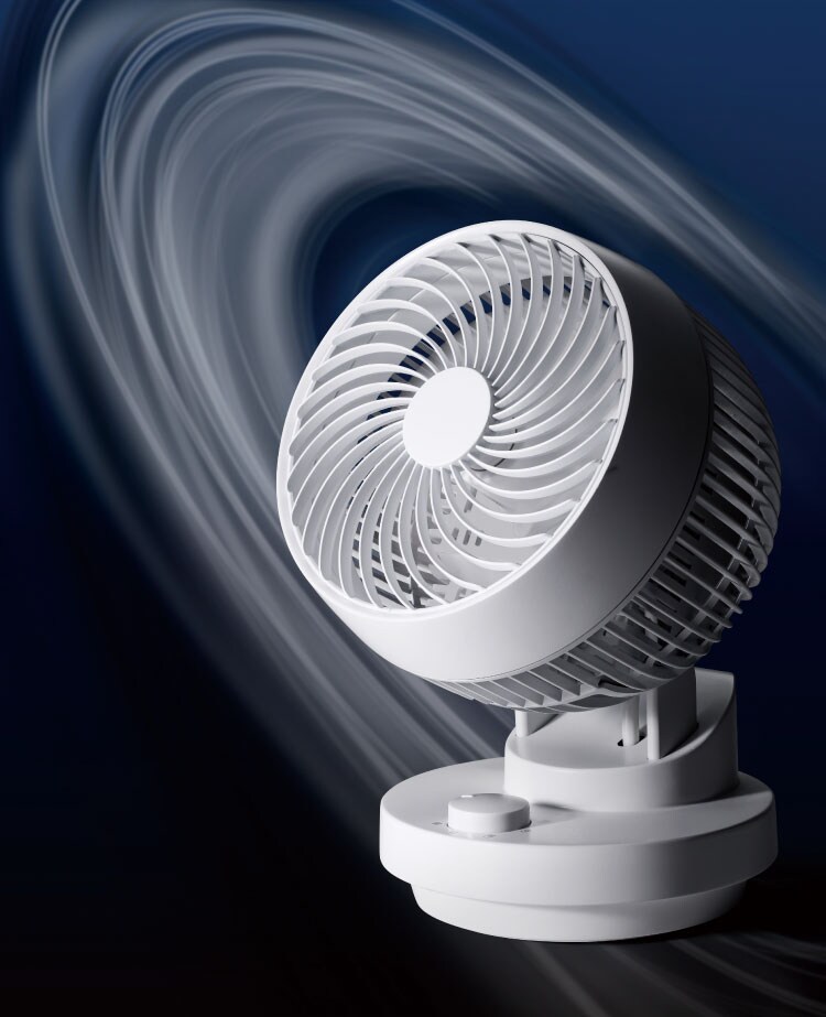 左右自動首振りでお部屋の広い範囲に強力な風を届けることができるコンパクトサイズのサーキュレーター。