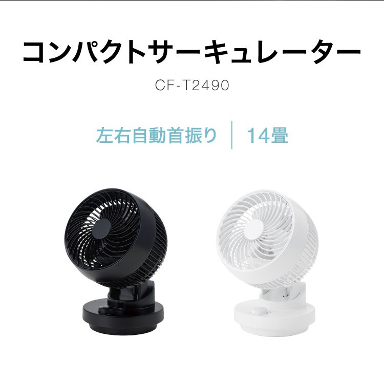 THREEUP 首振り機能付サーキュレーター AC 左右60度 自動 上下90度 14畳程度 ホワイト ブラック ガード分解 CF-T2490 首振り サーキュレーター 左右首振り コンパクト 小型 水洗い 送風【送料無料】