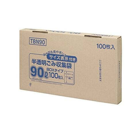 W900×H1000mm1枚ずつ容量表記されたゴミ袋です。業務用パック。100枚入りBOXタイプ。◆仕様:90リットル・乳白半透明◆厚さ:0.025mm◆入数:100枚高密度ポリエチレン