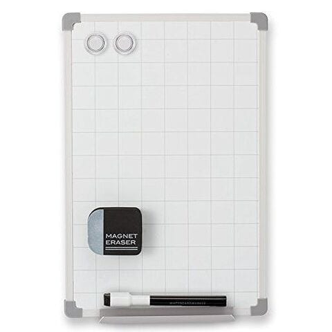 グループディスカッションや会議でのプレゼン・発表用に最適。25×25の暗線(方眼)がついてるからグラフや文字が書きやすい。付属のプラスチックトレーは取り外し可能で磁石でとまるイレーザー付き。 寸法/幅330×高さ220mm 厚さ/10mm 質量/215g 仕様/盤面に暗線入り。タテヨコ両用。背面にマグネット4カ所 付属品/トレー、マーカー(黒)、イレーザー、マグネット2個、つり下げ金具、ねじ、ひも、裏面用マグネット4個 板面材質/鉄板 枠カラー/グレー 枠材質/PVC 単位/1枚 メーカー品番/VWB067※裏面マグネット4つにつきましては付属品となっております。シールをはがして貼り付けをお願いいたします。