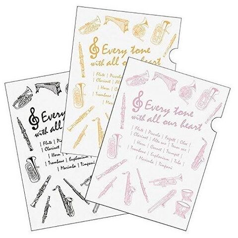 ブラスバンドで演奏される楽器をプリントした『クリアファイルA43枚セット』です♪