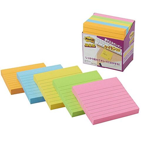 ポスト・イット 強粘着ラインノート 75x75mm 90枚x5個 ケイセン 蛍光 630-5SSAN