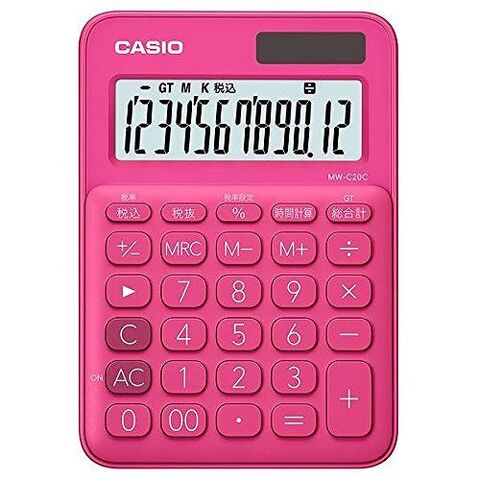 カシオ 電卓 12桁 (ビビッドピンク)CASIO カラフル電卓 ミニジャストタイプ MW-C20C-RD