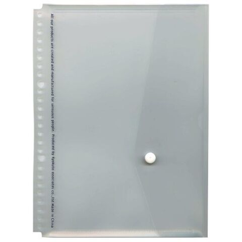 B5サイズ26穴バインダー用フラップ付きポケットです。B5サイズの書類がそのまま入ります。本体サイズ:横198×縦263(mm)。※一部画像に他のカラーのものを使用しております。サイズ:縦=263mm横=198mm。商品色傾向:透明。表紙パターン:無地。