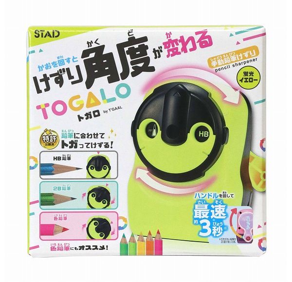 クツワ 鉛筆けずりトガロ(蛍光イエロー) RS034YE 鉛筆 鉛筆削り 鉛筆削り器 大きい デスク 机 角度 調整