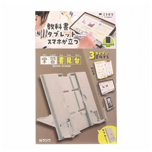 教科書スタンド・タブレットスタンド・スマホスタンドの3タイプに変化させることができる書見台です。