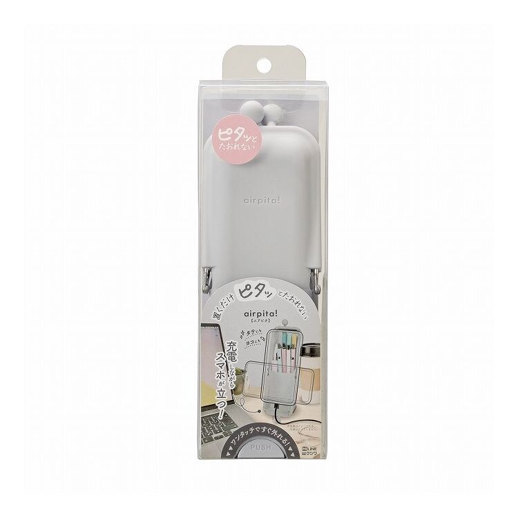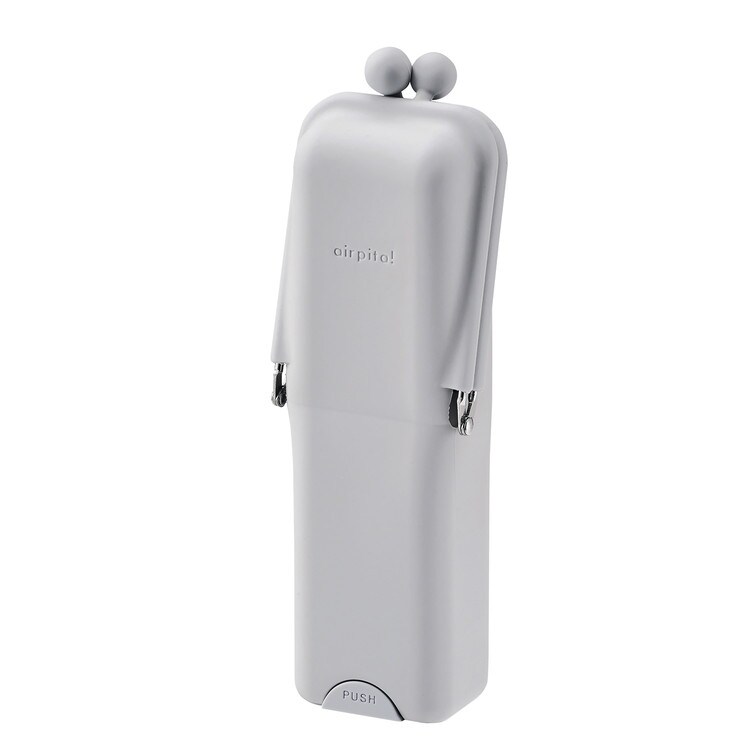 クツワ エアピタスリム グレー AK061GY 置くだけピタッとたおれない! 空気のチカラでくっつく吸盤 コンパクト ペンケース 筆箱 ペン立て ペンスタンド 文房具 くすみカラー かわいい プレゼント