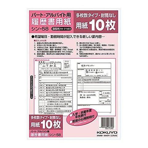 コクヨ 履歴書用紙パートバイトB5 シン-58