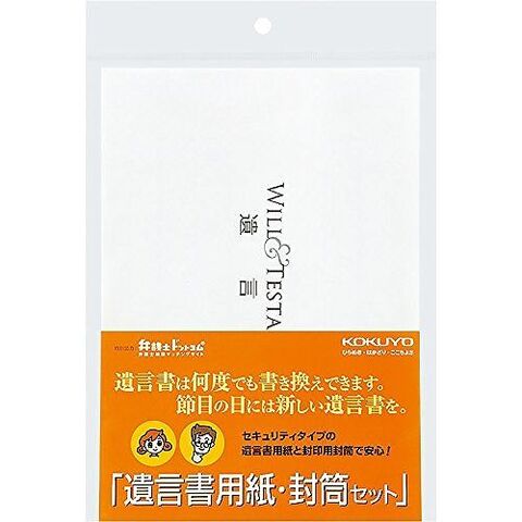【セット内容】 遺言書用紙(6枚) 遺言書下書き用紙(2枚) 封印用封筒(2枚)