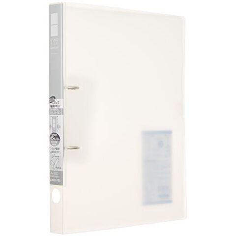 閲覧や抜き差しする頻度が多い書類に。片手で軽くつまむだけでラクに開けられる!下側のリングを閉じると、上側のリングも一緒に閉じます。収容枚数はそのままでスリムに!透明表紙タイプはこちら。