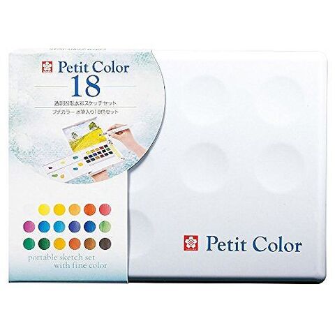 【特長1】コンパクトサイズの透明固形水彩絵の具18色セット+水筆付き
