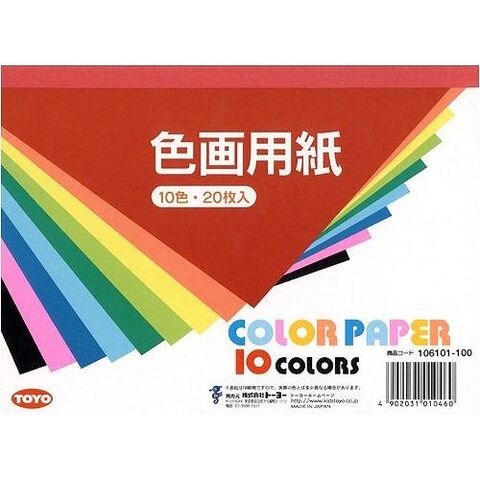 「トーヨー B6色画用紙 10色 106101 20枚入」は、10色入った色数豊富な色画用紙です。
