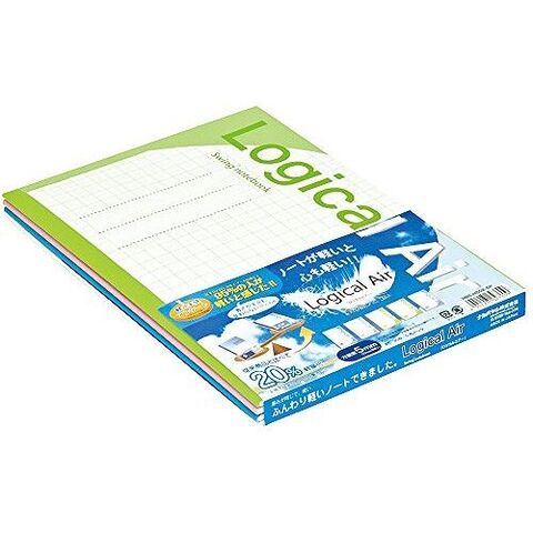 ●ナカバヤシ HB5-H502-5P ロジカルエアー(軽量ノート)B5・5冊パック 方眼5ミリ●ノートが軽いと心も軽い!!約20%軽量化(従来商品と比較)●仕様●サイズ:セミB5:ヨコ179×タテ252×厚15mm●本文:上質紙56g●表紙:コートボール紙●糸綴じ背クロス製本●梱包寸法:W370×D265×H225mm●本体重量:480g