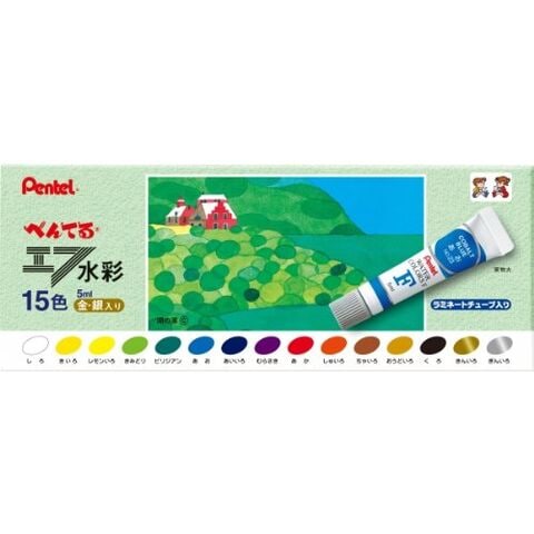 ぺんてる エフ水彩 ラミチューブ 15色 金銀入