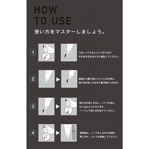 【2】紙面から離す度にパイプと芯が伸び、残り芯が短くなるまで書き続けられます。