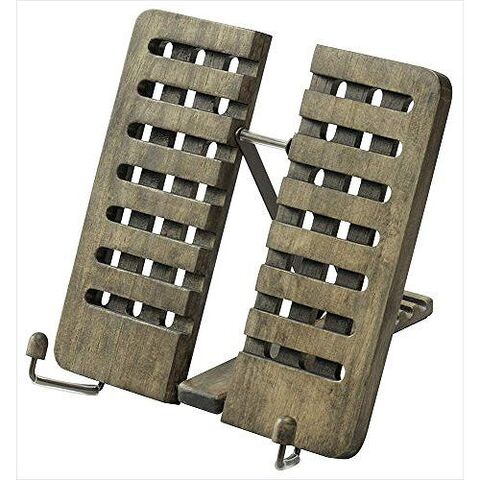 ●フラットに折り畳めて便利!様々なシーンで活躍する木製ビックスタンド●フラットに折り畳めるため場所をとらずに収納●本の厚さに合わせ調節できる回転式ページ押さえ●5段階の角度調整●見た目に楽しく、軽量化や本体の反り防止にも役立つ格子柄●本体サイズ:W175×H165×D210mm(使用時)●折りたたみサイズ::W200×H183×D12mm●本体重量:210g●本体素材:ラバーウッド、スチール●角度調節:5段階●本のサイズ:幅130cm以上、厚さ約25mm以内
