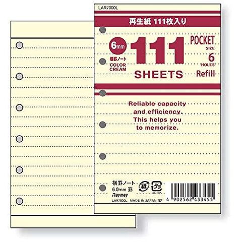 横罫ノート6.0mm罫(ミニ6穴サイズ:ポケットサイズ)。