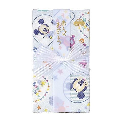 可愛らしいディズニーキャラクターのガーゼハンカチを使用した、出産お祝いのための金封です。