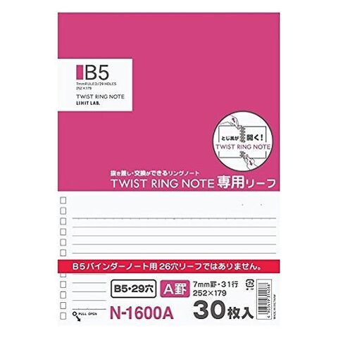 ツイストノート専用リーフ29穴です。一般のB5バインダー26穴には利用できません。
