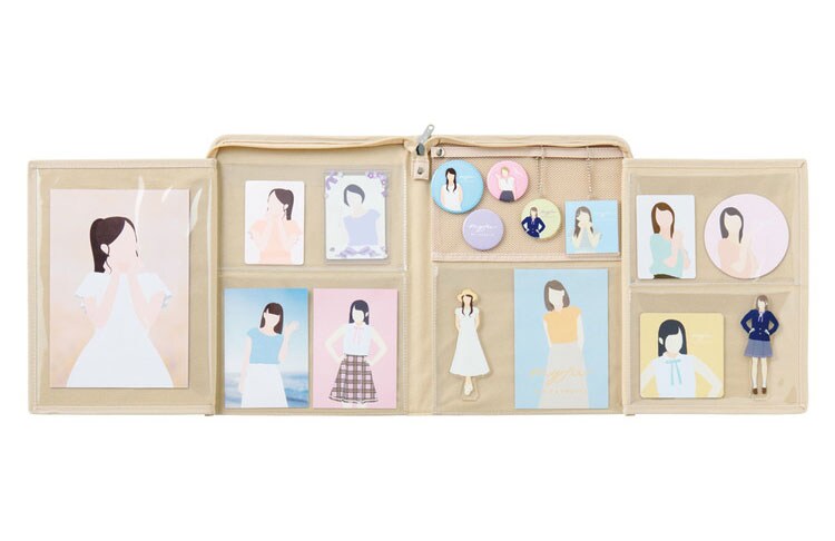 推し活グッズを飾って立てられるコレクションスタンド。簡単に推しの祭壇が作れます!ファスナーを閉じればコンパクトになり、持ち運びも可能です。バリエーション豊富なポケットで、様々な推し活グッズに対応。A5版のクリヤーホルダーが入る大き目ポケットや小さめポケットにはカードや写真、アクスタ。コースターなどが入れられます。カードは硬質カードケースに入れたまま収納可能。ポケットには収納物の飛び出しを防ぐフラップ付きです。メッシュ部分には缶バッジの取り付けが可能です。メッシュ部分上部のループにはキーホルダ類を掛けられます。