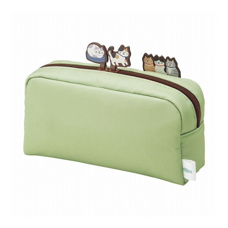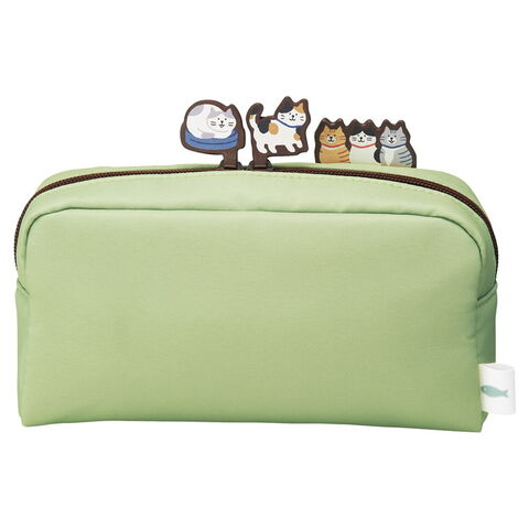 LIHIT LAB. にゃんシーン ボックスペンポーチ L ピスタチオグリーン ペンケース筆箱 コスメポーチ 猫 CAT 猫好き クッション入り A2224-7【ポイント10倍】
