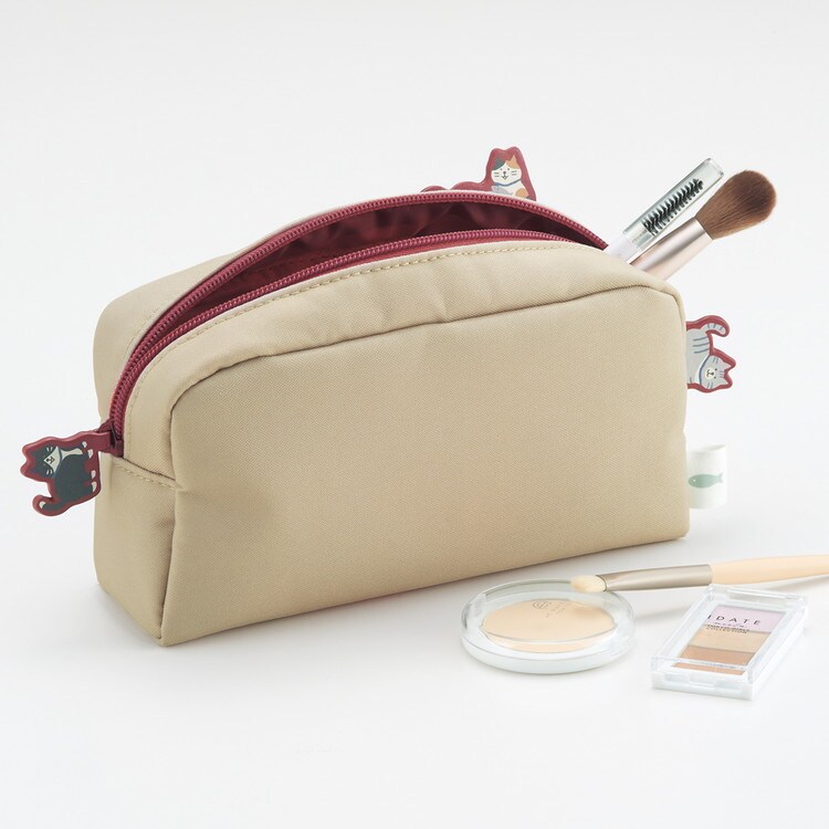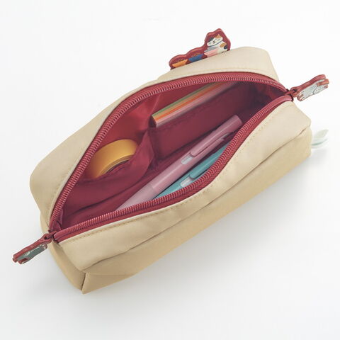 ネコ好きの方に共感頂ける家ネコの「あるあるシーン=ご飯の音が聞こえると歩み寄らずにはいられないネコさん」をファスナートップで再現しています。ダブルファスナーで間口が大きく開き、中身の出し入れがスムーズです。ペンが約45本収容可能です。クッション入りで自立性が高くなっています。ペンケースだけではなくコスメポーチとしてもお使いいただけます。内側には仕切りポケット付きです。。