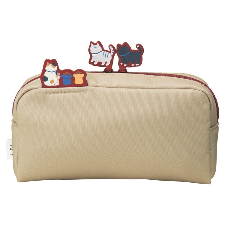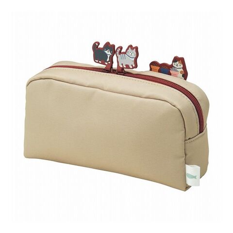 LIHIT LAB. にゃんシーン ボックスペンポーチ L ビスケットベージュ ペンケース筆箱 コスメポーチ 猫 CAT 猫好き クッション入り A2224-16【ポイント10倍】