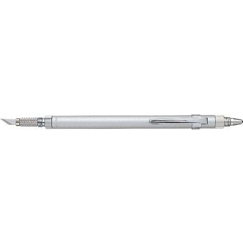●刃・針が両端に装着されており、どちらもリバーシブル機構のため、使い終えたらボディーの中に収納できます。刃をつけたまま収納できるので使いやすく携帯に便利。軽くて丈夫なアルミ削り出しホルダー。中に替刃を入れておける替刃ポケット付き。鉛筆感覚の直径9mm。