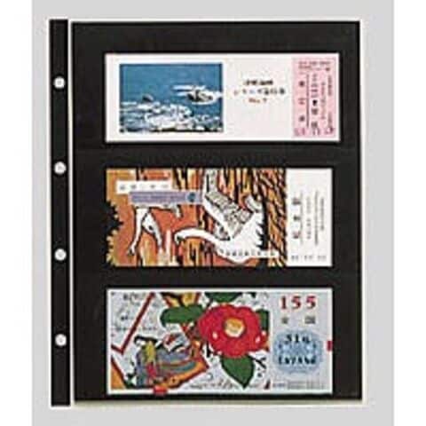 台紙:黒台紙。ポケット:3段。用途:小型シート、宝くじ、記念乗車券、等。10枚入。
