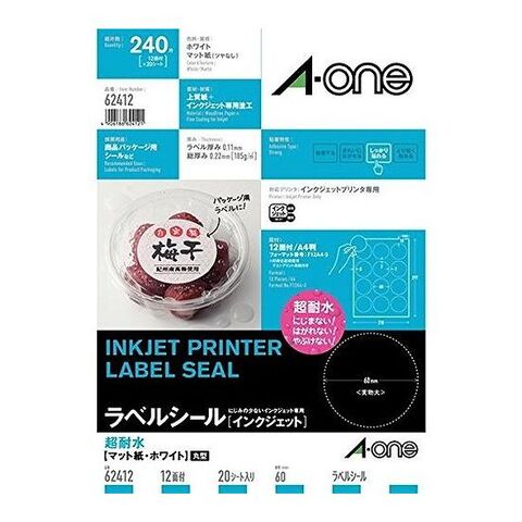 ●エーワン 62412 ラベルシール[インクジェット]超耐水タイプマット紙 A4判 12面 丸型