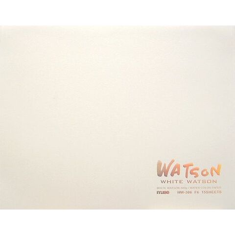 ホワイトワトソン300gF6四方天糊ブロックナチュラルホワイト色で、中目の肌を持ち、内面と外面に滲み止めを施した高級水彩紙です。・木綿繊維を主原料とした強靱な表面は消しゴムにも強く、デッサン、スケッチ、パース用に最適です。・絵具やチャコール、パステルののりが良く、特に水彩絵具の発色が良い紙です。注---絵具をはじく場合は、水を含ませた刷毛や太い筆などで紙の表面を何度か洗うようにしてから布で拭き取って使うと、絵具ののりが良くなります。通常、湿った用紙は完全に乾かしてから使います。