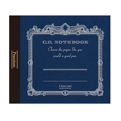 シルクのようになめらかな書き心地のハイエンド・ノート「Premium。C.D.。NOTEBOOK/プレミアムCDノートブック」です。本製品のために開発されたオリジナル筆記用紙「A.Silky。865。Premium」を使用し、万年筆でもボールペンでも驚くほど滑らかに書くことができます。また、製本方法には「糸かがり綴じ」を採用。抜群の強度と、フラットな開きを実現しました。 。箔押しが施された表紙も格調高い仕上がりです。サイズ:A6変型。罫線:6.5mm罫線。用紙枚数:96枚。