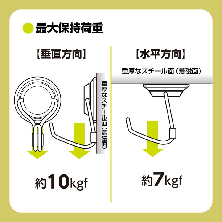 コンパクトサイズながら強い保持力を実現。フックでスチール壁面を有効活用。フック部分はスイング&360度回転式接触面にはラバー素材を使用