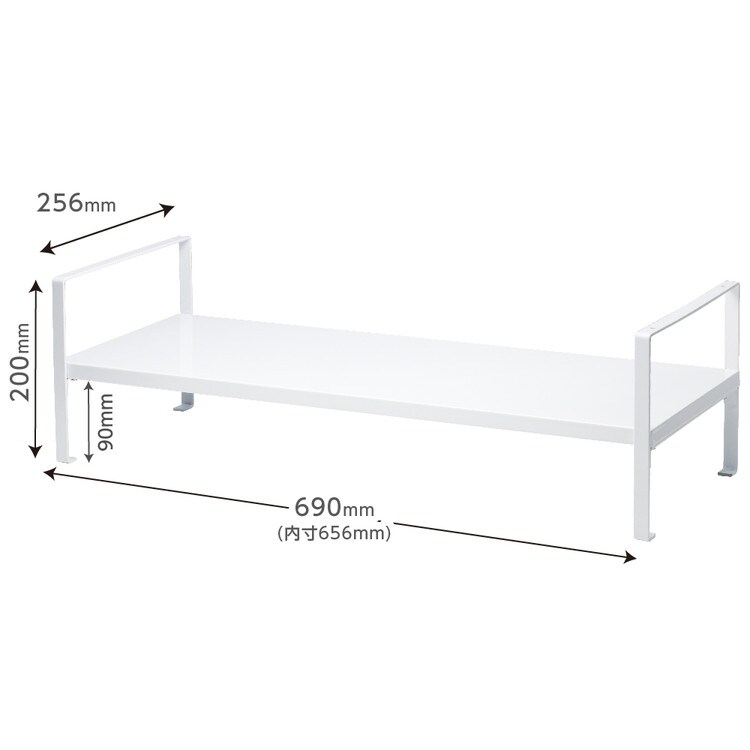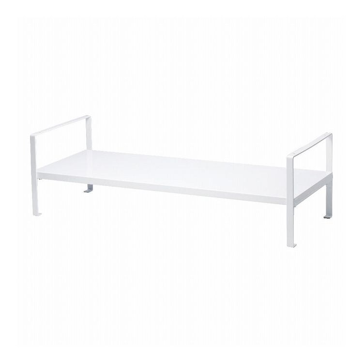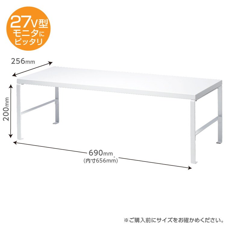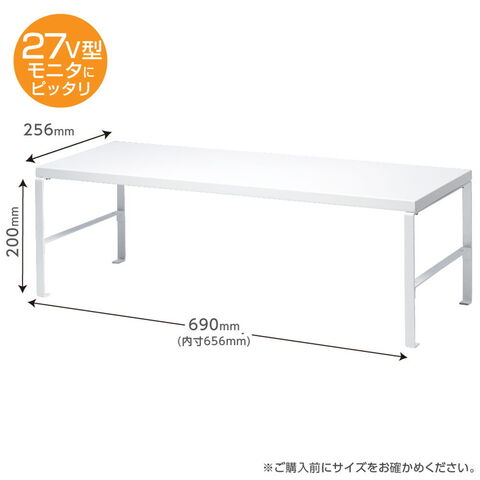 デスクの上に置くだけで、収納力がアップ!オフィスでよく使われるPCモニタのサイズに合わせたピッタリ設計です。棚は27インチモニタが収まるサイズです。棚下にはテンキー付のフルサイズキーボード、17インチ液晶ノートPCが収まります。棚板の位置は上段・中段で変更が可能!その時の用途に合わせた棚の高さ・収納サイズで使用できます。脚には傷つき防止スポンジ付きですのでデスクの上を傷つけません。