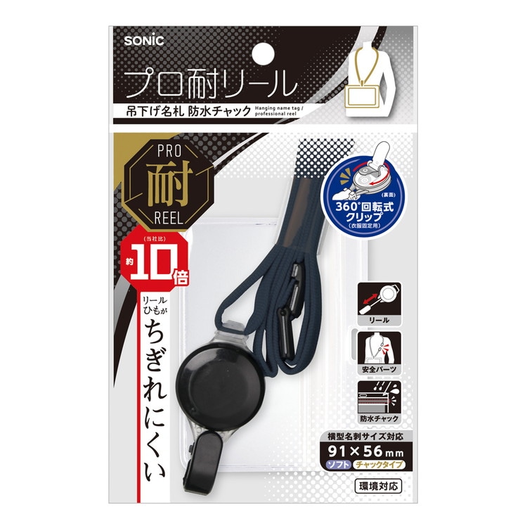 ソニック プロ耐リール吊り下げ名札 黒 ブラック NF-2184-D 文具 文房具 勉強 学習 試験 テスト 資格 小学校 中学校 高校 大学 デスク ワーク 仕事
