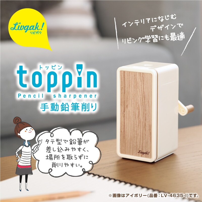 【正規販売店】 ソニック sonic リビガク トッピン タテ型 スリム 手動 鉛筆削り LV-4635-I アイボリー 鉛筆 えんぴつ 削り 細い コンパクト