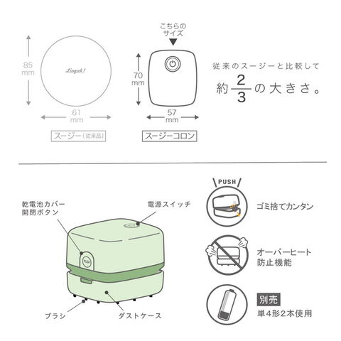 商品仕様・性能・収容量:単4乾電池2本使用(別売)