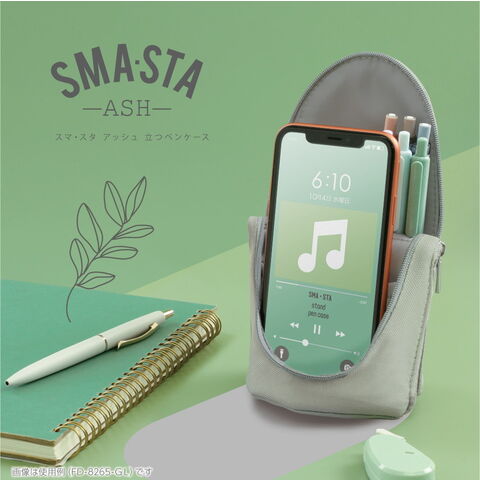 ソニック スマ スタ アッシュ立つペンケース モスグレイ FD-8265-GL 文具 文房具 勉強 学習 試験 テスト 資格 小学校 中学校 高校 大学 デスク ワーク 仕事