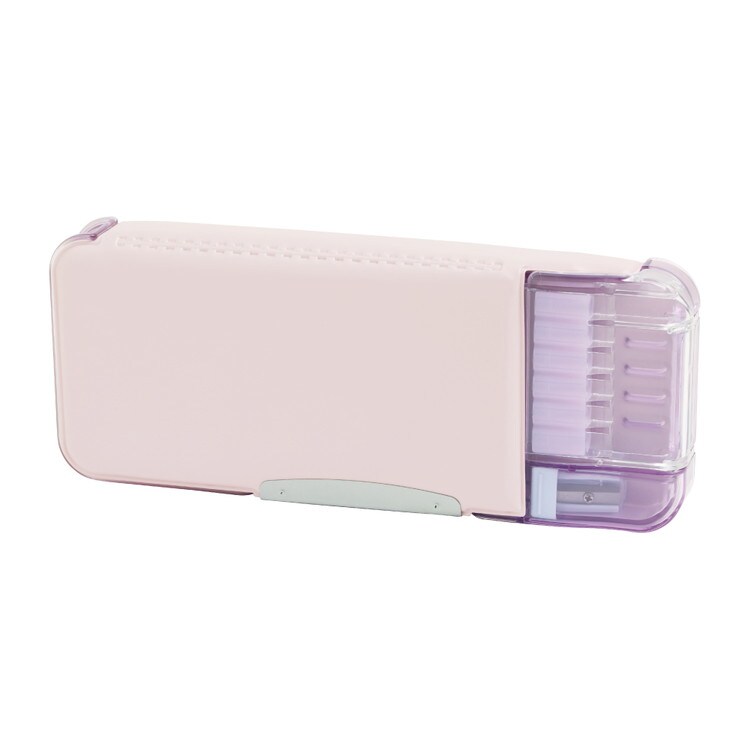 鉛筆の削り忘れ、入れ忘れ…そんなうっかりを解決!こどものうっかりをサポートする「えんぴつチェック両面筆入」フタを開けずに、外側から鉛筆の芯先が見える設計だから、閉じたままでも鉛筆の有無や削り忘れのチェックができる。