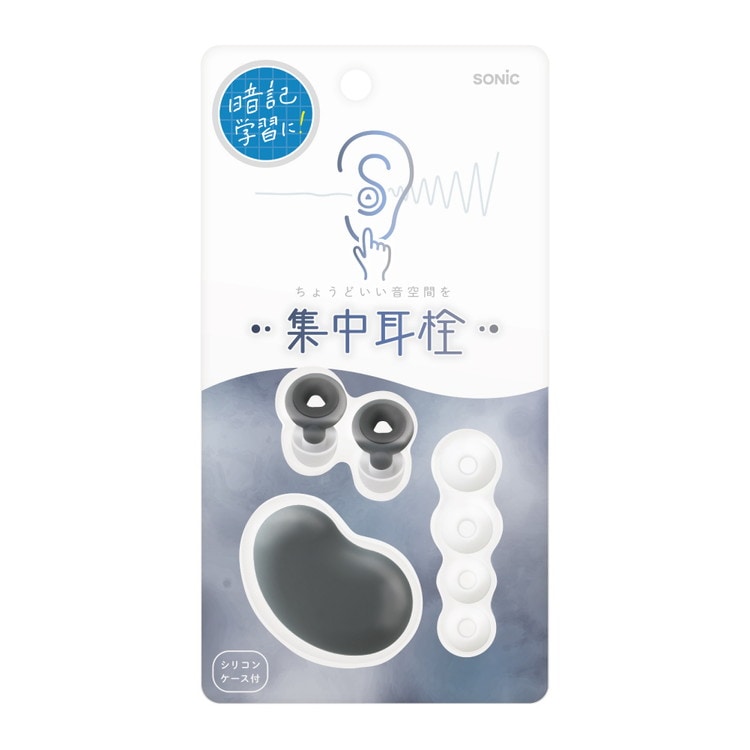 無音と雑音の間、適度なノイズが「ちょうどいい」。耳栓で、集中力アップゾーンを手に入れよう!カフェや図書館など、周囲の雑音が気になるときや、勉強の集中スイッチを入れたいときにピッタリ。暗記効率アップに。耳栓をつけた状態で音読すると、自分の声だけ頭の中に響くため、単語等の暗記にオススメです。持ち運びに便利なやわらかシリコンケース付(※替えのイヤーピースは入りません)3サイズのイヤーピース。ご自身の耳に合わせてご使用ください。お気に入りの色をえらべる♪4色のカラー展開。※本製品は外部の音を完全に遮断するものではありません。※耳の炎症を引き起こさないために、長時間連続しての使用は避けてください。※防水・防滴仕様ではありません。