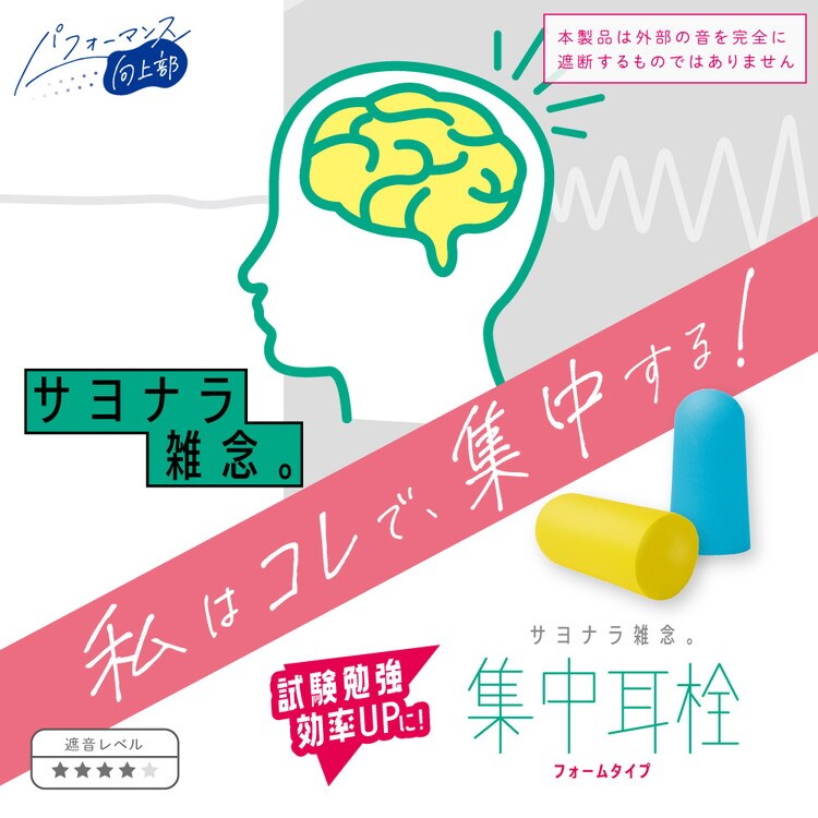 高い遮音性(SNR35dB)で、雑念はらって試験勉強に一点集中!試験前のラストスパート、集中力を高めたいときにピッタリ。外出先で勉強するときの騒音対策にも。4ペア入(使い捨てタイプ)持ち運びに便利なやわらかシリコンケース付(※1ペア分が入ります)※本製品は外部の音を完全に遮断するものではありません。※耳の炎症を引き起こさないために、長時間連続しての使用は避けてください。※防水・防滴仕様ではありません。
